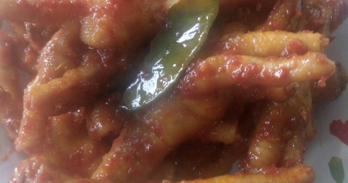 300 g daging ayam, potong 3x4x ½ cm 1 siung bawang putih, parut ½ sdt merica bubuk 1 sdt garam 1 butir telur ayam, kocok rata 100 g tepung. Tumis bumbu halus dan bawang bombay hingga harum, masukkan ceker, air, masak hingga air menyusut hingga setengahnya. Buka tutup panci, masukkan air rebusan. Bersihkan ceker hingga bersih, memarkan ceker dengan pemukul daging. Rasanya gurih dengan saus yang asam manis segar.